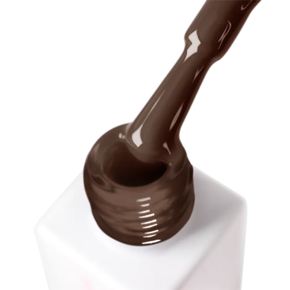 Chocoladekleurige gelpolish — een echte vondst voor liefhebbers van diepe, rijke tinten.