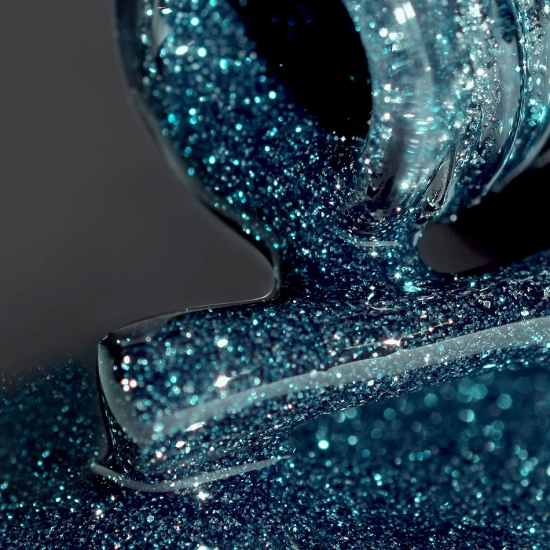 Deze gellak combineert de glans van diepgroene en blauwe deeltjes op een donkere achtergrond. Tint voor gedurfde en spectaculaire vrouwen. Ziet er chic uit op nagels van elke lengte en vorm.