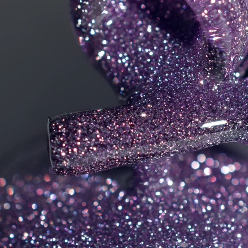 Purple 11 - het is een stijlvolle paarse kleur van reflecterende gellak. Deze tint is opgenomen in de selectie van trendkleuren van het Pantone Institute van jaar tot jaar. Het drukt de luxe en chic van amethistoverlopen uit. Deze tint heeft een speciaal magnetisme en trekt creatieve, gevoelige vrouwen aan. De combinatie van lichtreflecties en paarse basis overtreft alle verwachtingen.